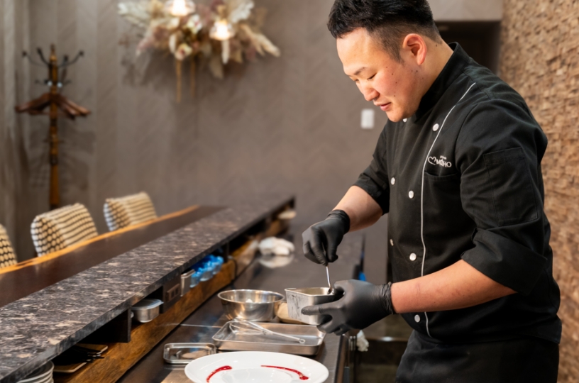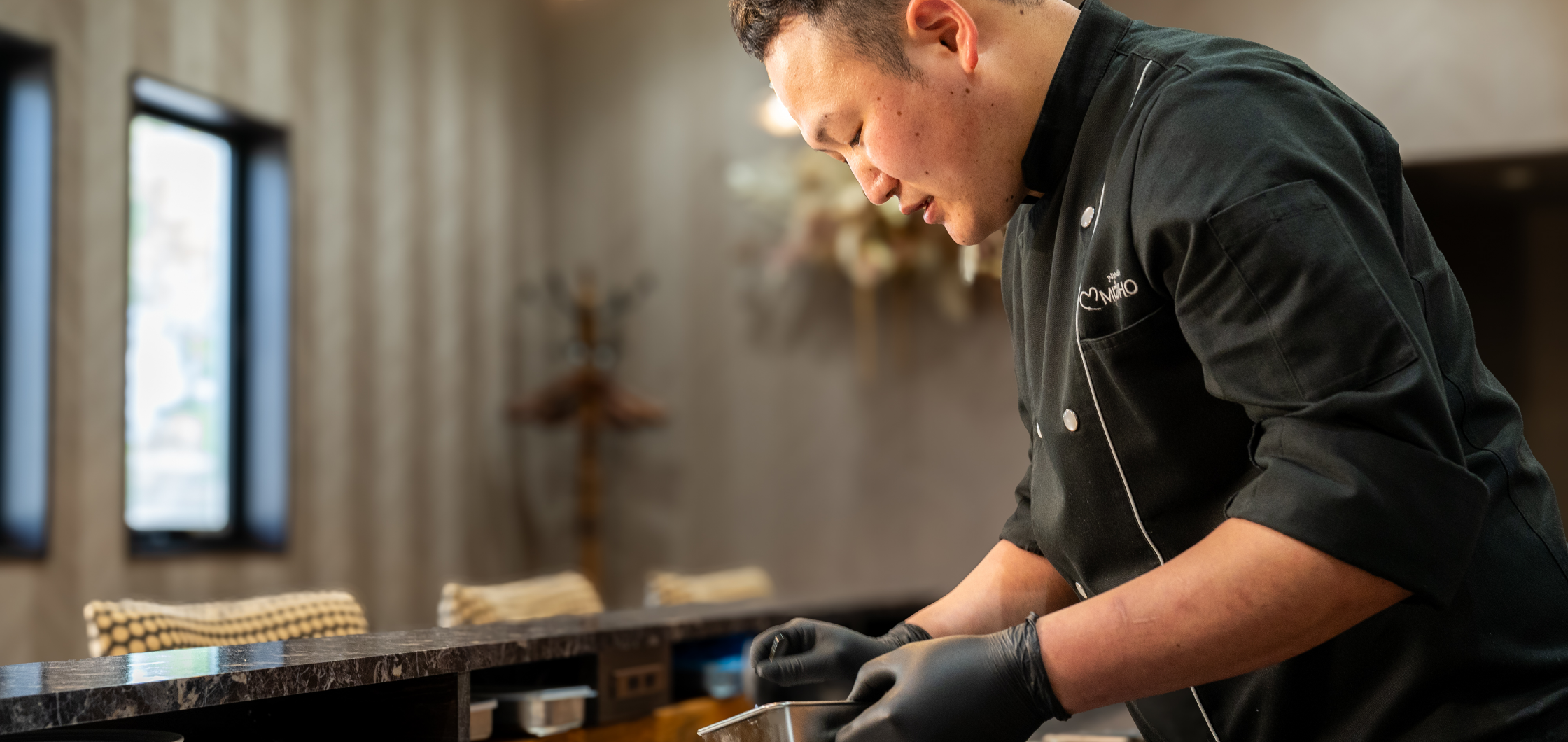シェフが目の前で盛り付けや仕上げを行い、その瞬間にしか味わえない香り・温度・食感をお届けします。
