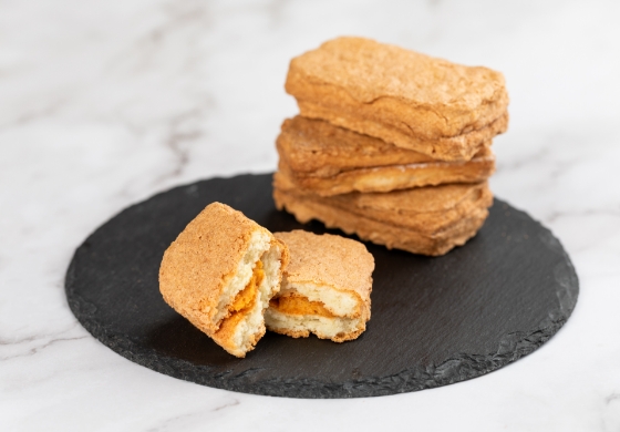 木頭柚子を使用したバタークリームと自家製木頭柚子ジャムをサブレでサンド。ベルギー産スイートチョコレートでコーディングしたおすすめのチョコレート菓子。