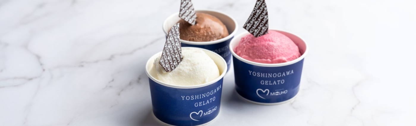 県特産のすだちや阿波和三盆糖などを使った吉野川ジェラートをはじめました。素材にこだわって作ったジェラートは濃厚で滑らかな口溶けに仕上がっています。